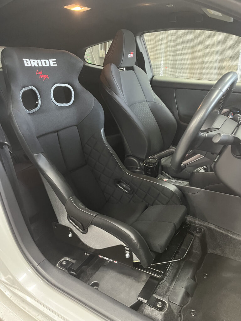 トヨタ GRヤリス に BRIDE XERO VS PLUS を装着しました!💺✨ GRヤリスは標準の着座位置が高めなことでも有名ですが、今回はより自然で運転しやすいポジションを求めて XERO VS PLUS を選択。装着後のローポジション量は なんと -84mm! 視界・ペダル角度・ステアリング距離、どれも自然になり、運転そのものが“扱いやすくなる”のを体感できるほどの変化です😳 XERO VS PLUS はフルバケットの中でも扱いやすさが魅力のモデル。 深いホールド感はしっかりありながら、乗り降りもしやすく、ストリート走行メインの方でも使いやすい絶妙なバランス。長時間のドライブでも負担が少ないシート形状で、サーキット・街乗り・ワインディングと幅広く対応する万能タイプです。 ローポジションにより重心が下がり、特にコーナリングの安定感がアップ。ステアリング操作にも余裕が出て、GRヤリス本来の走りをさらに楽しめる仕様になりました🔥 「競技用まではいらないけど、しっかりホールドして安心できるシートが欲しい」という方にもピッタリの一脚です! 👉 ブリッドショールームでは XERO シリーズを含む全モデル試座可能! 車種ごとの相性やローポジションのご相談、取り付けまで専門スタッフが丁寧にサポートいたします。お気軽にお立ち寄りください😊
